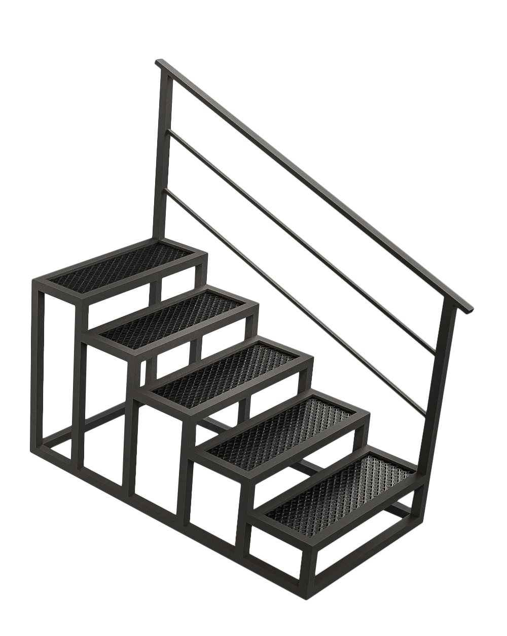 Прочная и удобная лестница из металла с обшивкой из кедра позволит комфортно подниматься и погружаться в воду (5 ступеней и площадка).