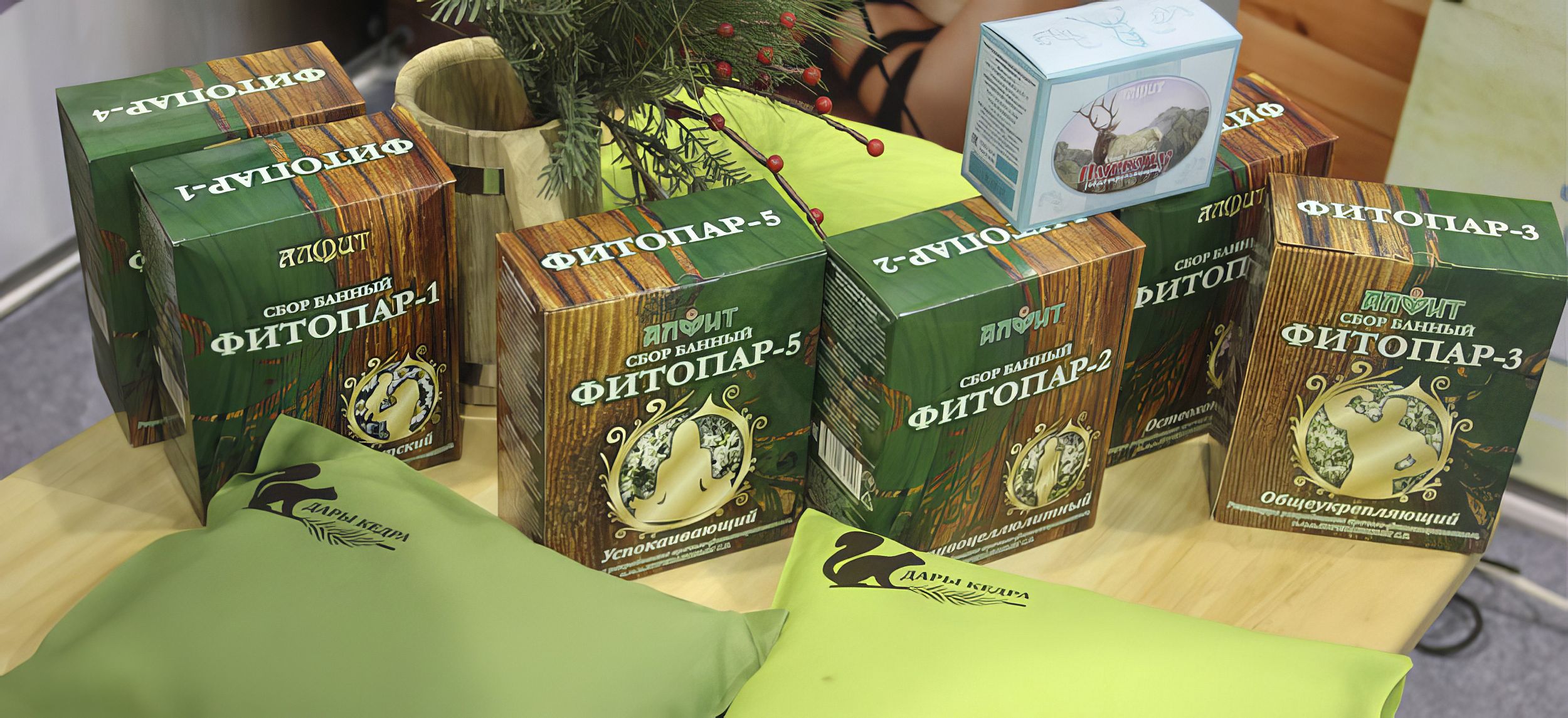 При приобретении фитобочки, бани, ванны или купели рекомендуем обратить внимание на фитосборы, которые можно добавлять не только непосредственно в парогенератор, но и запаривать в горячих ваннах. В каталоге компании Дары Кедра представлены алтайские фитосборы «Алфит», производителем которых является фармзавод «Гален».
