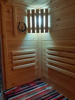 Сауна идеально вписалась в угол комнаты. Перед принятием душа всегда захожу погреться. Пользуюсь сауной полгода и могу сказать, что за это время ни разу не болела ОРВИ, совпадение или закономерность, но тем не менее факт остается фактом!