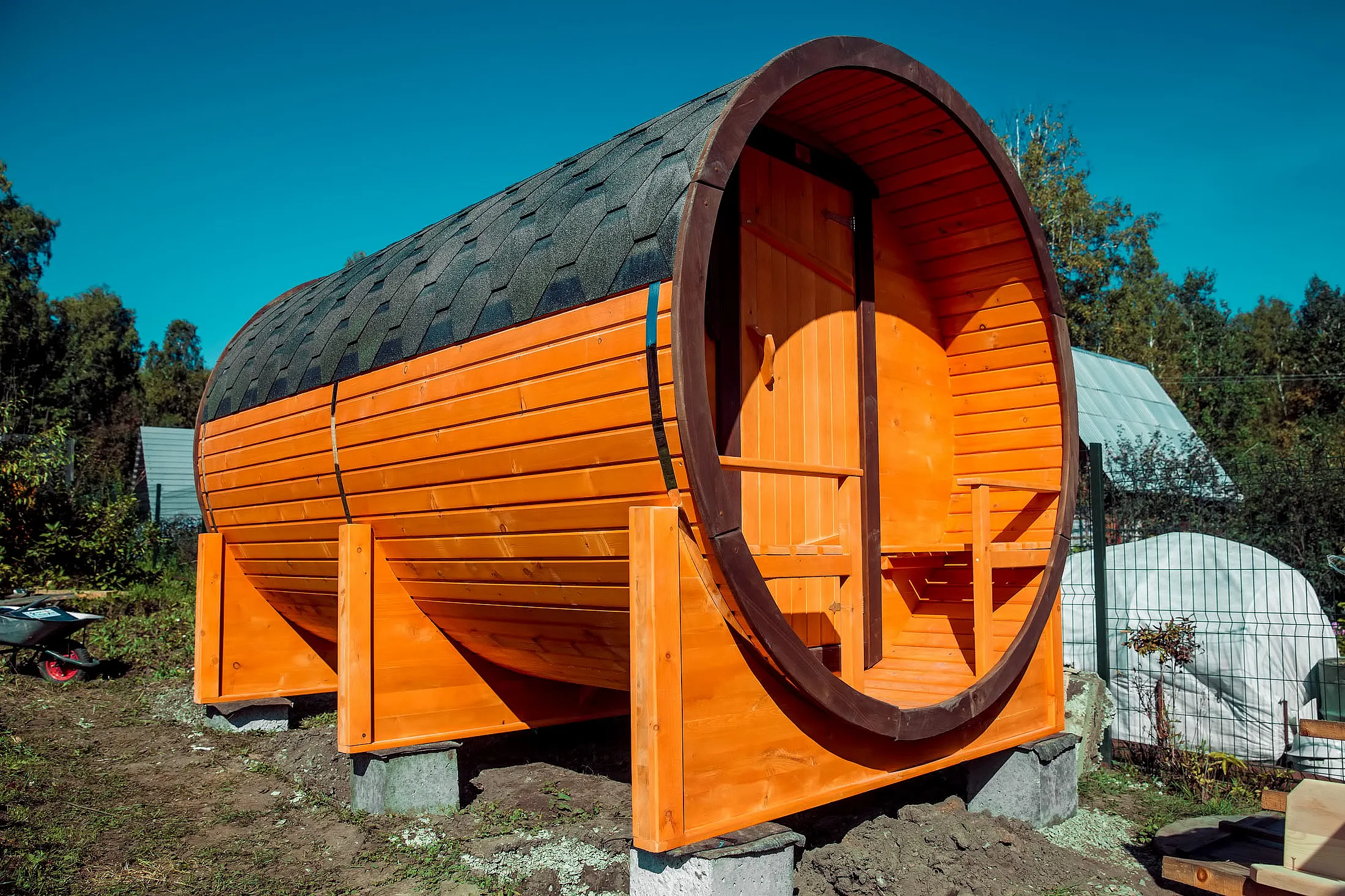 Баня-бочка «Орео» с панорамным окном