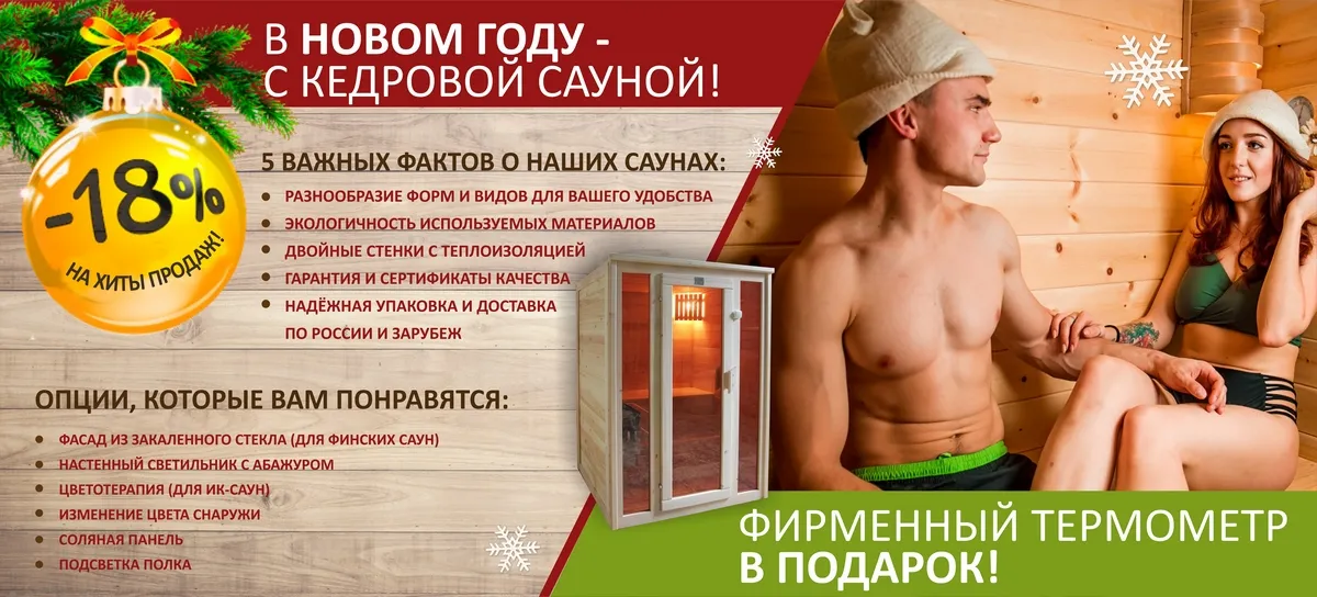 Если Вы не успели оформить заказ на сауну со скидкой 18% в конце 2018 года, то у Вас есть прекрасная возможность сделать это прямо сейчас!