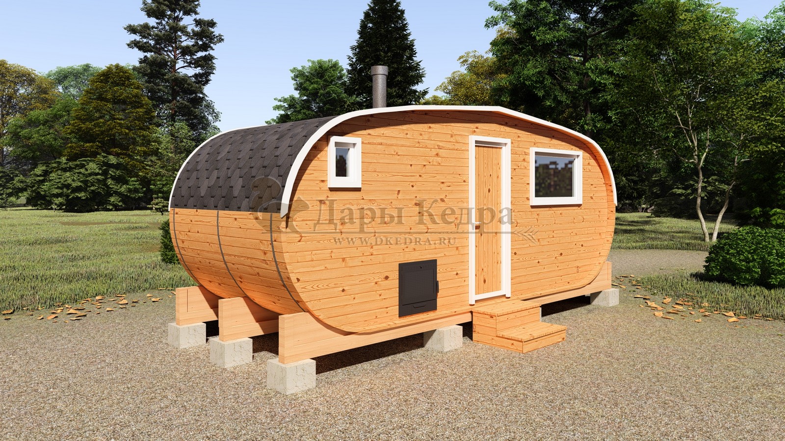 • Баня-бочка овальная из кедра 4х2,2 метра Овальная баня-бочка из кедра просторная и вместительная. Имеет два отделения: раздевалку, которую можно использовать как комнату отдыха, и парилку. Для удобства пользования раздевалка оснащена лавочкой, полкой и вешалкой из кедра. В парильном отделении располагается печь и двухуровневый открытый полок. Для установки такой модели не требуется полноценный фундамент, поэтому при необходимости ее можно перенести на другое место. Так же баню-бочку можно укомплектовать верандой со скамейками, козырьком и печью с внешней загрузкой, благодаря которой весь мусор после топки останется на улице. Древесина кедра насыщена эфирными маслами и фитонцидами, которые активируются при воздействии температур. Таким образом, парение в каркаско-щитовых банях из кедра вдвойне полезно.