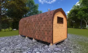 Мобильная баня-бочка с каждым днем набирает все большую популярность благодаря её возможной транспортировки куда угодно: на отдых в лесу, на рыбалку или на побережье реки