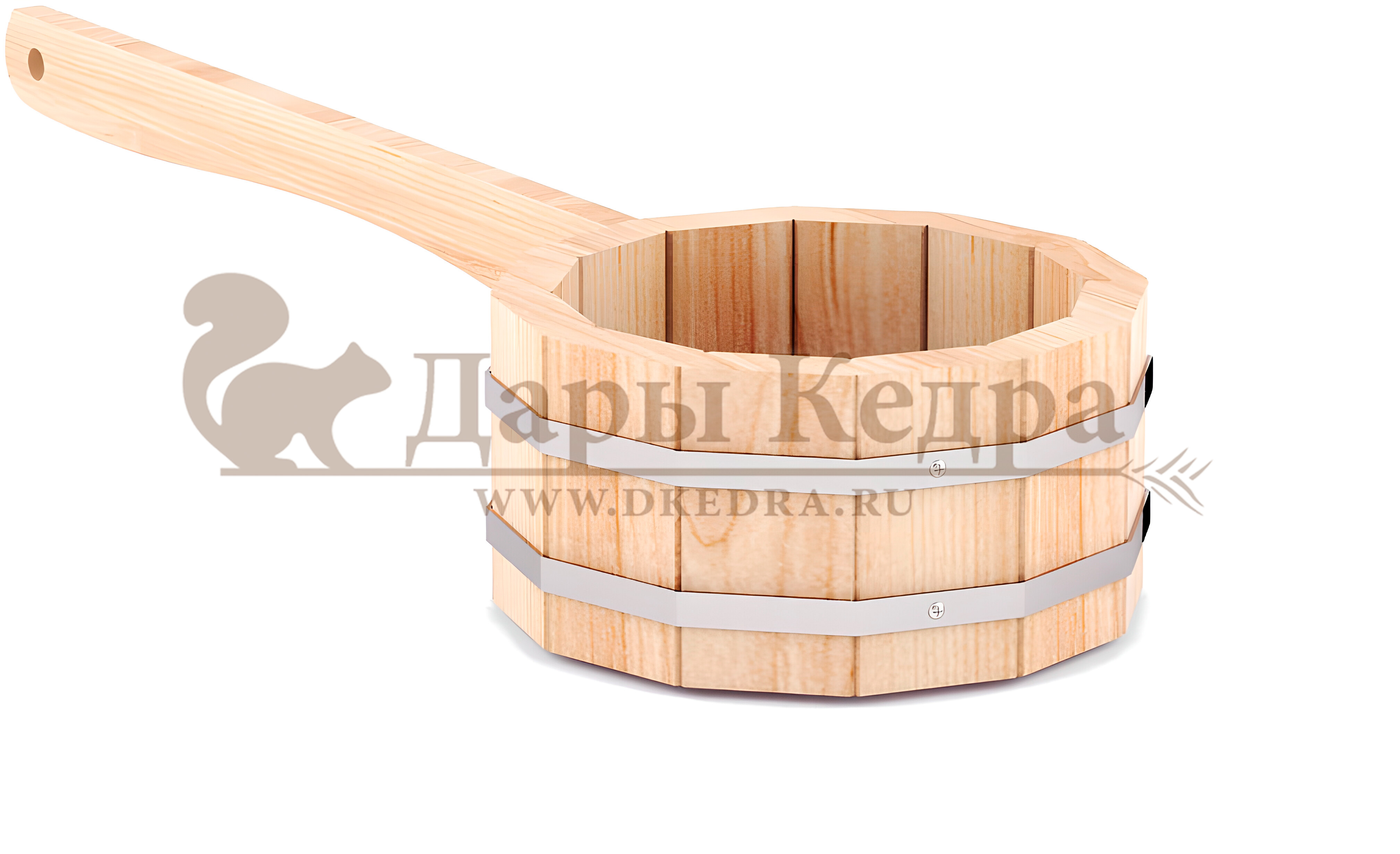 • Ковш из кедра Деревянный ковш для бани из кедра это эффектный аксессуар. Он&nbspделает процессы парения и омовения тела более приятными и удобными. Вы удивитесь, но обычный деревянный черпак может служить не только для наполнения водой шаек или выплёскивания её на раскалённые камни – в сочетании с другими предметами, сделанными из природного материала, он формирует в помещении неповторимый микроклимат.