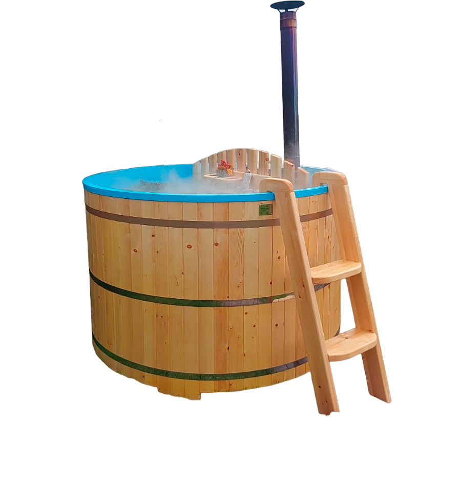 • Фурако круглая из кедра с литой термопластиковой вставкой с внешней печью Это уличная подогреваемая купель с круглой внутренней чашей из термопластика, которая имеет цельную форму вместе с сиденьями и дном. Для удобства пользования купель фурако оборудована приставной лестницей. Подогрев воды осуществляется за счет внешней печи с дымоходом. Термопластик устойчив к воздействию температур, облегчает уход за фурако и увеличивает срок ее службы. Парение на свежем воздухе – это отличный способ укрепить здоровье и поддержать организм в тонусе.