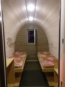 Кемпинг дом изготовлен из хвойных пород древесины. Кровля из мягкой черепицы обеспечивают защиту от осадков.