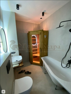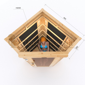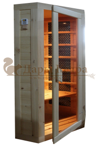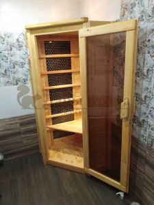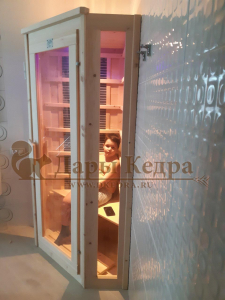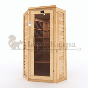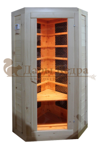 Это специально оборудованная кабина из липы для прогрева тела человека сухим теплом. Воздух в таких парных не нагревается. Инфракрасные лучи воздействуют на тело, равномерно прогревая мышцы, суставы и органы. Карбоновые излучатели, встроенные в стены кабины, обладают мягким прогревом, что полностью исключает возможность ожога. Работает кабина за счет электричества. Установка сауны в угол, позволяет рационально использовать пространство помещения. Подходит как для домашнего использования, так и для коммерции.