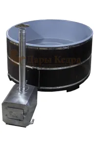 Это уличная подогреваемая купель с круглой внутренней чашей из термопластика, которая имеет цельную форму вместе с сиденьями и дном. Для удобства пользования купель фурако оборудована приставной лестницей. Подогрев воды осуществляется за счет внешней печи с дымоходом. Термопластик устойчив к воздействию температур, облегчает уход за фурако и увеличивает срок ее службы.