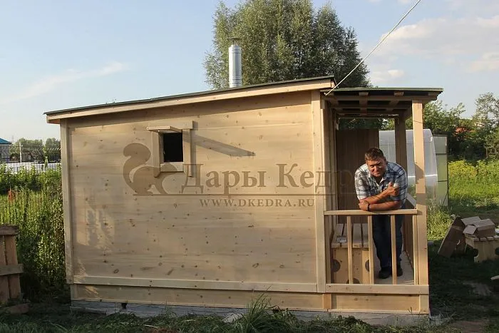 Каркасно-щитовая баня из кедра «Мини» с верандой