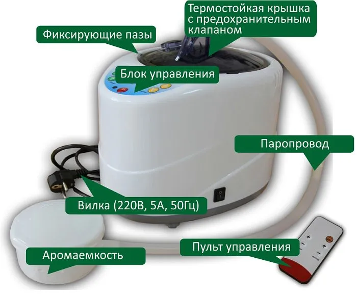 - Блок и пульт управления. Простая регулировка температуры, времени, мощности процедуры с защитой от выкипания. Отключение при пустой чаше.