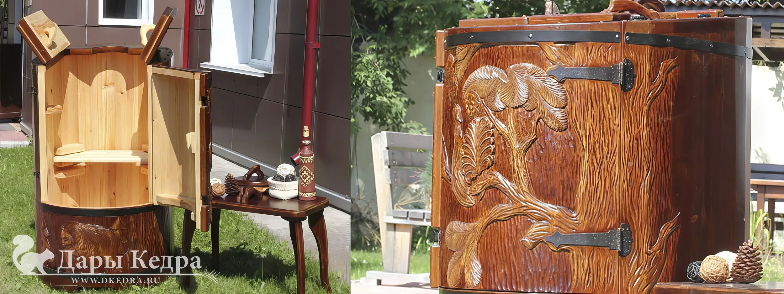 • Любая бочка, изготовленная из кедра, полезна для здоровья: будь то колотая или изготовленная по столярной технологии.