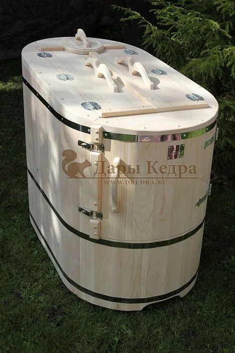 Многие знают, что все гениальное просто. Это высказывание полностью подходит и к фитобочке. Представляя ее уникальность и удивительные свойства, не многие понимают, насколько просто она устроена. На первый взгляд это самая обычная бочка. Изготавливают ее только из кедров-долгожителей. Считается, что эта древесина обладает наибольшим количеством полезных, питательных веществ. Внутренние стенки бочки можно покрыть маслом, а снаружи-воском. Эта пропитка влияет на срок службы фитобочки, а также придает ей больше живительной силы в борьбе с заболеваниями. Если сравнивать кедр с другими хвойными породами, то результаты впечатляют. Во-первых, кедровая древесина является самым лучшим теплоизолятором по сравнению с другими деревьями. Во-вторых, при повышении температуры она не выделяет смолы, тем самым обеспечивая пациенту комфорт во время процедуры. Согласитесь, что не очень приятно, когда на вас сверху капает горячая смола.