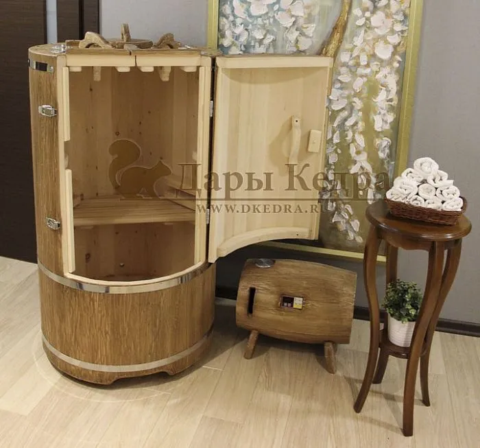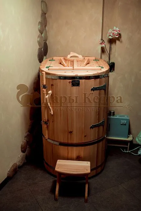 Одним из самых главных свойств кедровой бочки является мобильность. Она не привязана к какому-то определенному месту. Ее можно поставить не только в СПА-салоне, массажном кабинете или клинике, но и в квартире, частном доме.