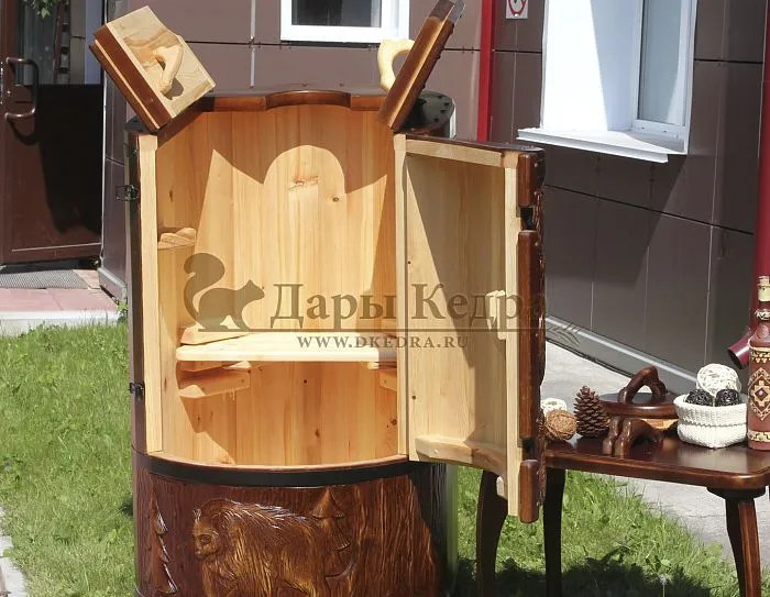 Изготавливают ее из самых разных материалов, однако наибольшей популярностью пользуется именно кедр. Это дерево с давних пор привлекало людей своими лечебными свойствами. Все мы знаем, что на Руси любили париться. Монахи перепробовали множество древесины пока не поняли, что кедр лучше всего влияет на эффект парения. Археологами были найдены многочисленные рисунки, подтверждающие, что уже тогда народ проводил лечение кедровой бочкой. Она представляла собой большой деревянный сосуд, стоящий на камнях. Внутри находился человек, а подогрев осуществлялся с помощью костра, который зажигали рядом. Иллюстрации тех времен показывали знахаря, клавшего подогретые пламенем булыжники под бочку. Перед этим он совершал некий обряд и обливал их травяными настоями. Такое лечение в фитобочке помогало при болях в спине, шее или суставах. Изготавливали бочки только из кедровой древесины.